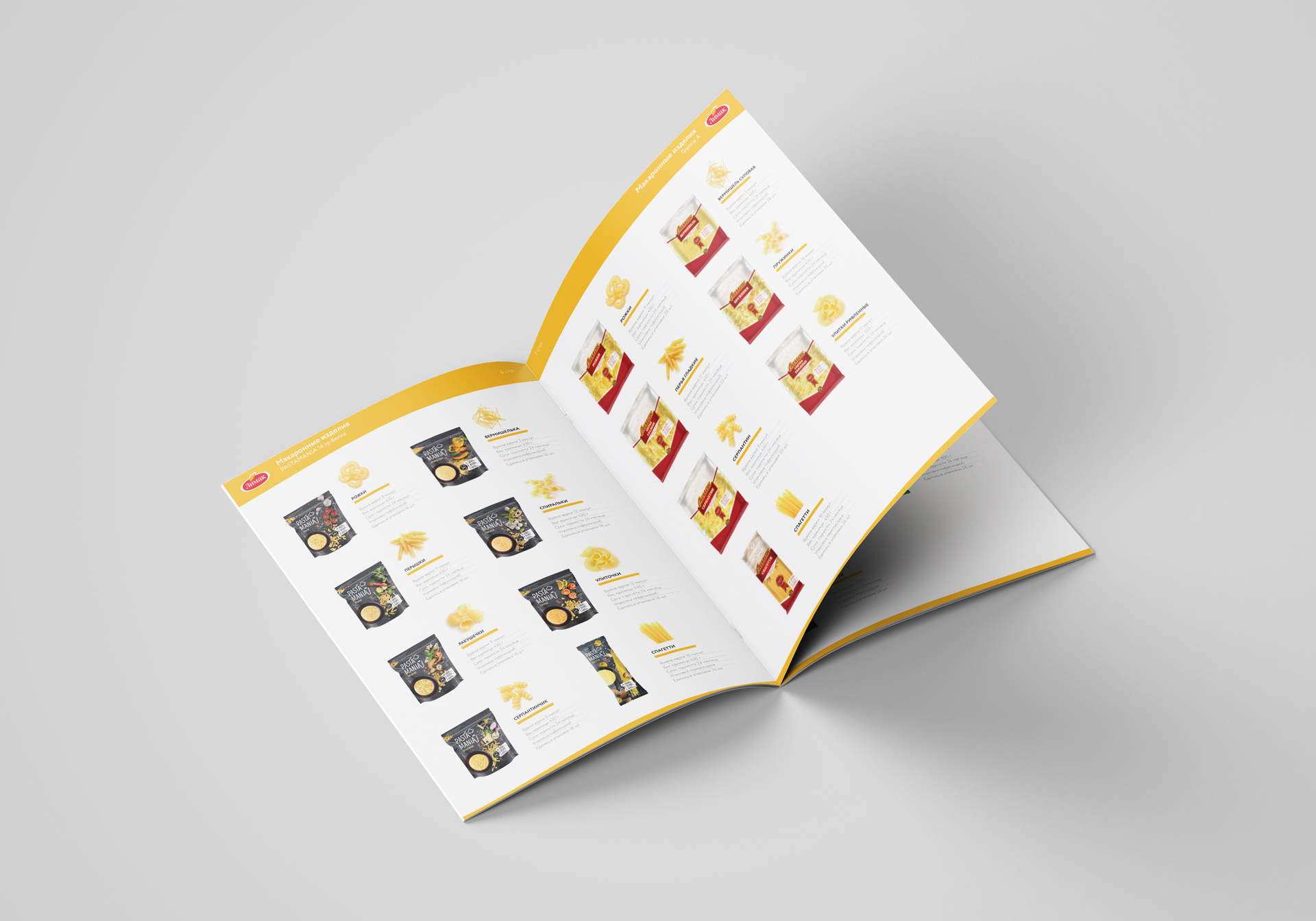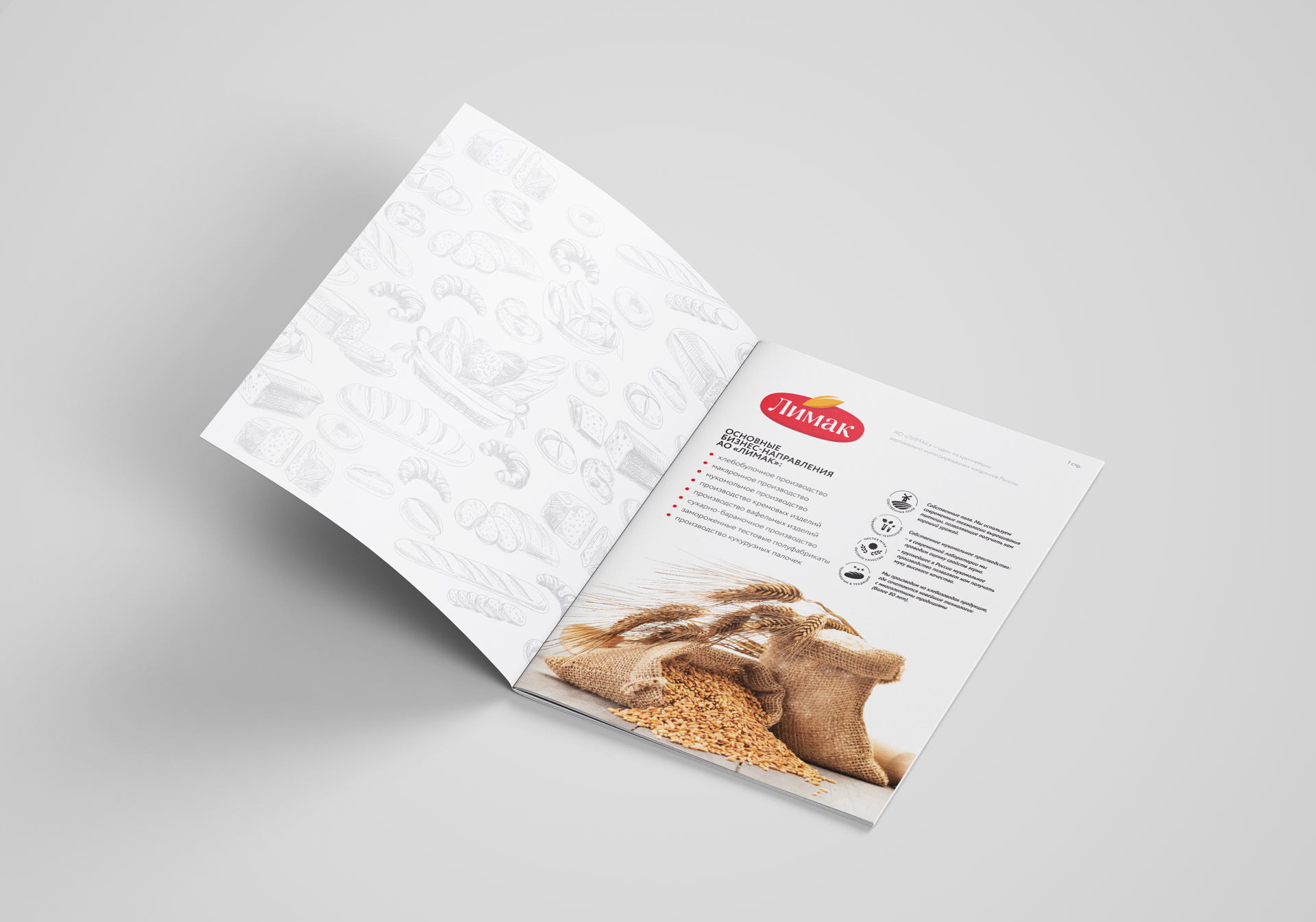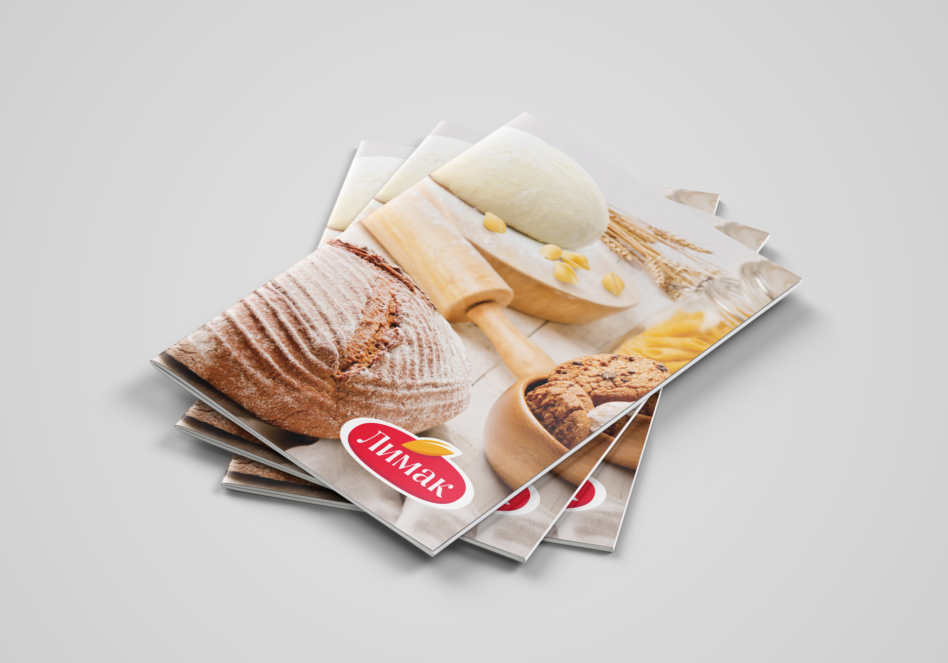 Дизайн, верстка и изготовление каталогов для компании Лимак. Каталог сделан в двух вариантах: горизонтальном и вертикальном. «ЛИМАК» — это один из лидеров пищевой промышленности России. Компания объединяет 10 современных предприятий мукомольного, хлебобулочного, макаронного и кондитерского производства, сосредоточенных на территории Липецкой области.