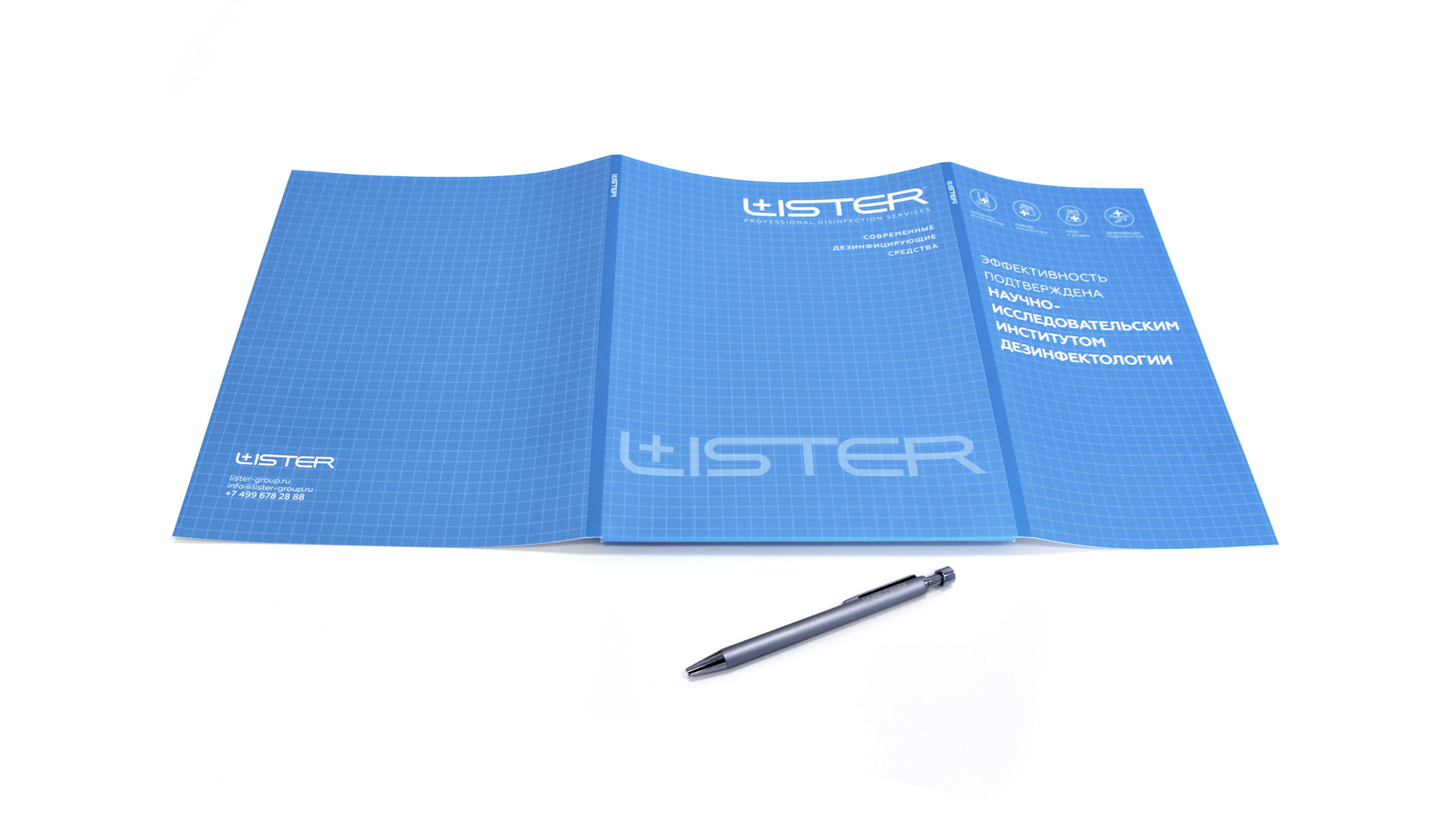 Научно-производственный холдинг LISTER производит профессиональные дезинфицирующие средства для объектов здравоохранения, предприятий индустрии услуг, торговли, транспорта, пищевой промышленности, общественного питания, жилищно-коммунального хозяйства и иных сфер. Изготовили для них буклет, папку, блокнот и ручку с логотипом.